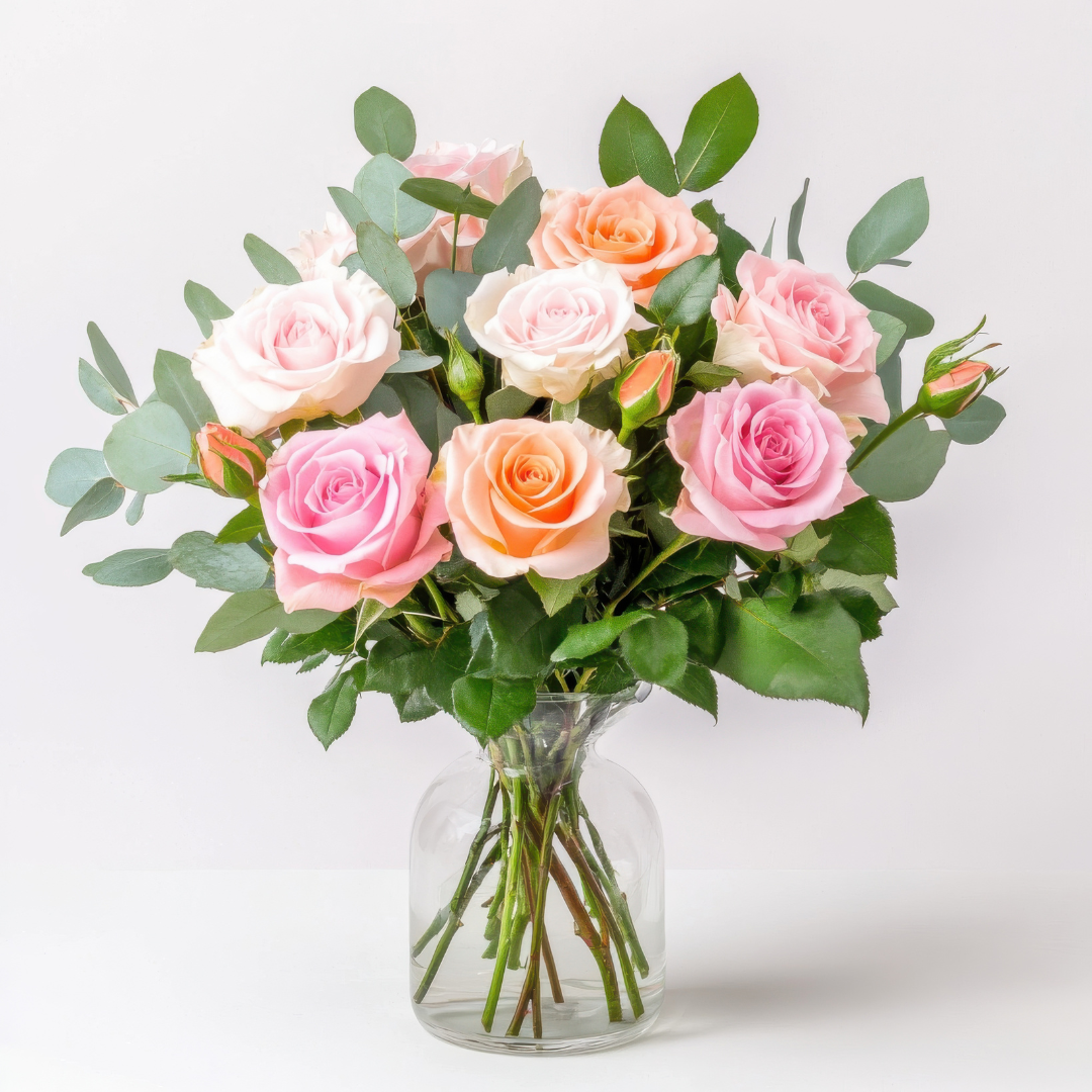 Bright, cheerful, and full of charm, our Mixed Dozen Roses Bouquet is a stunning way to celebrate any occasion. Featuring a hand-selected assortment of 12 premium roses in a variety of beautiful hues—romantic reds, soft pinks, sunny yellows, pure whites, and joyful oranges—this bouquet brings a delightful burst of color and meaning to every moment.